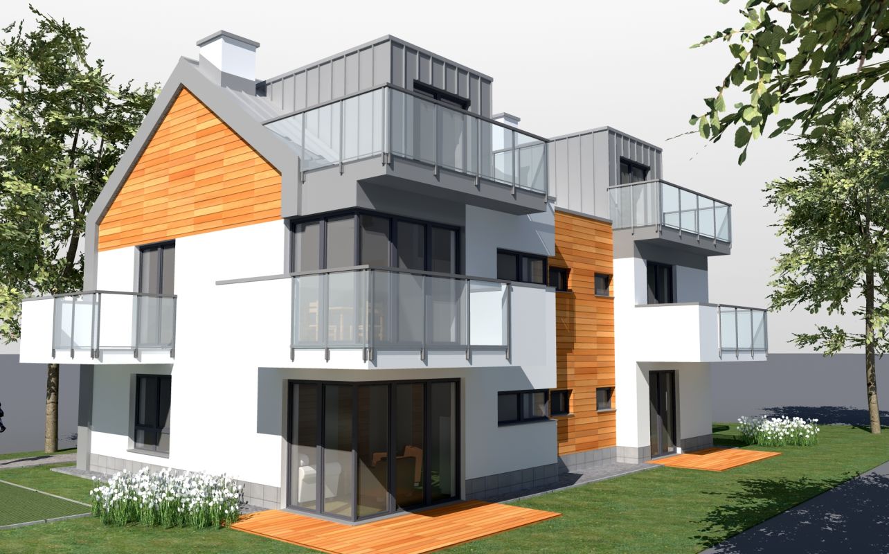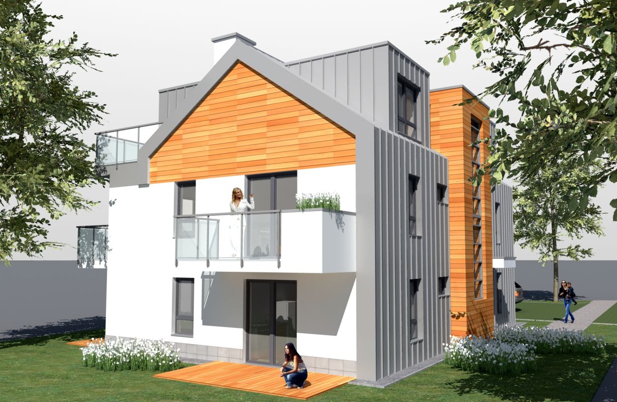 | zakres projektu | Projekt architektoniczny koncepcyjny i budowlany domu jednorodzinnego z pokojami do wynajęcia oraz zagospodarowanie terenu. |