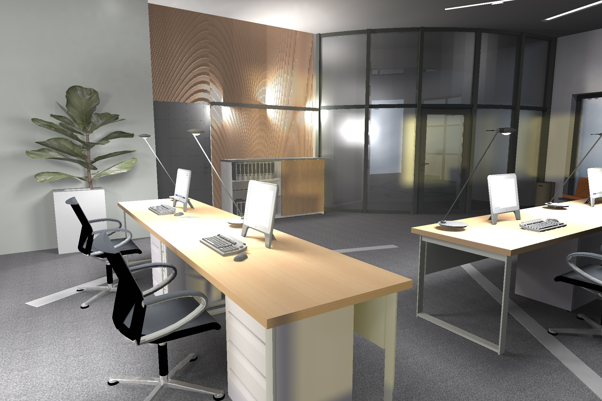 Projekt koncepcyjny wnętrz o powierzchni użytkowej ok. 700 m2 w budynku siedziby firmy. |